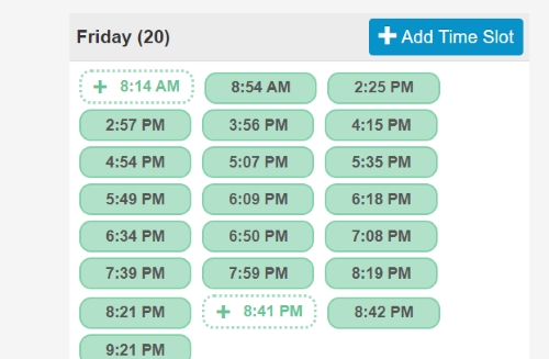 Time slots surrounded by a dotted green line are recommended time slots – that I haven’t added to your schedule yet.