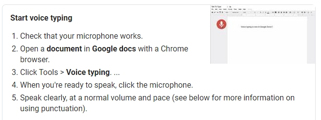 You can type and edit by speaking in Google Docs or in Google Slides speaker notes. This feature is only available in Chrome browsers.